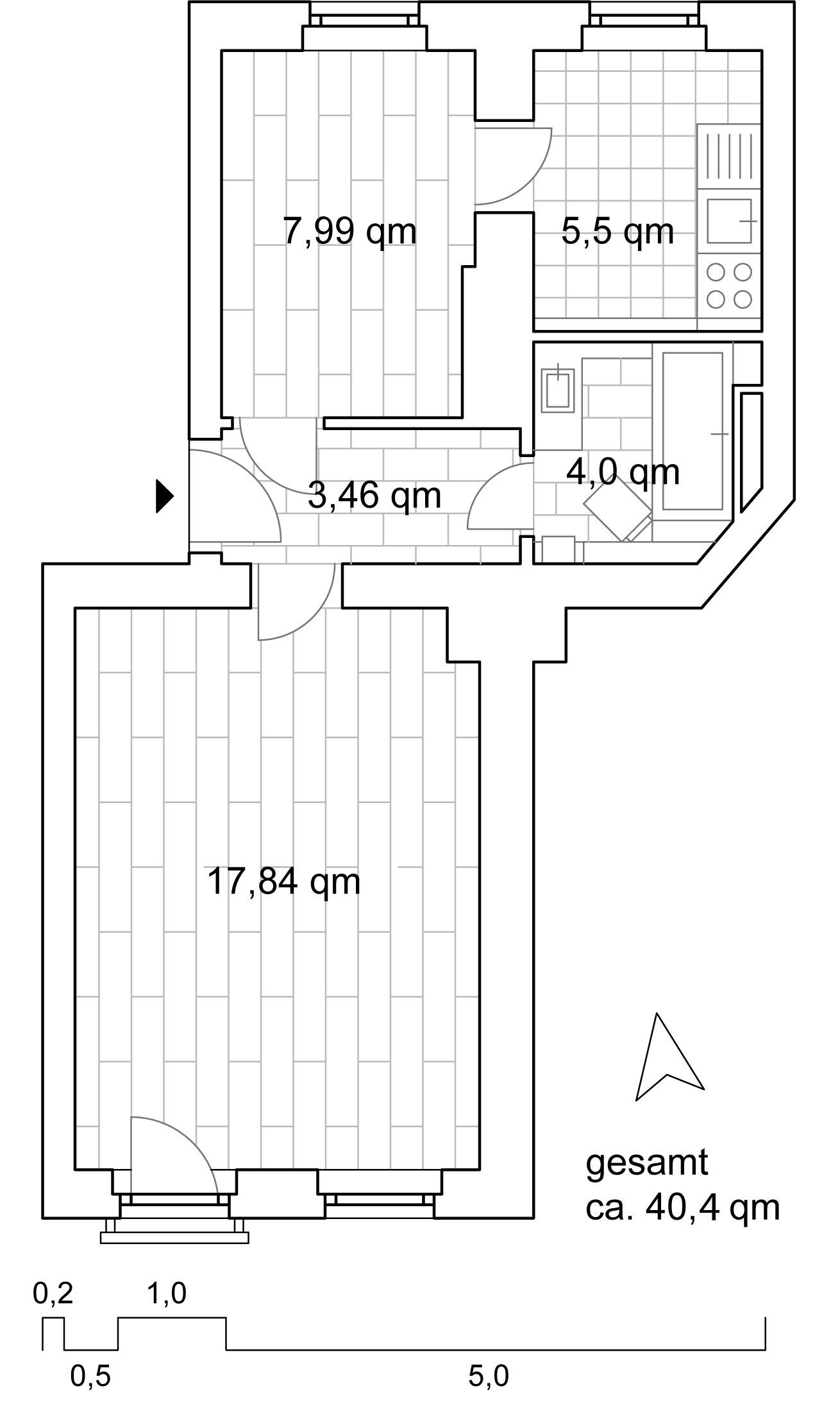 Bei dieser Sanierung einer Altbauwohnung in Berlin fanden umfangreiche Maßnahmen statt, um einen zeitgemäßen Wohnstandard zu schaffen. Hierfür wurden u.a. neue Eichen-Bodenbeläge verlegt, weiße Sockelleisten verbaut, die Wände ausgebessert und weiß gestrichen, um ein reduziertes, helles Raumgefühl zu erzeugen. Weiteres Kernstück des Projekts ist die Optimierung des vorgefundenen Badezimmers, welches komplett überarbeitet und frisch ausgestattet wurde. Neue weiße Fliesen, Edelstahlprofile, Armaturen, Einrichtungsgegenstände und Bambus-Oberflächen erzeugen zusammen ein sauberes, hygienisches Erscheinungsbild.