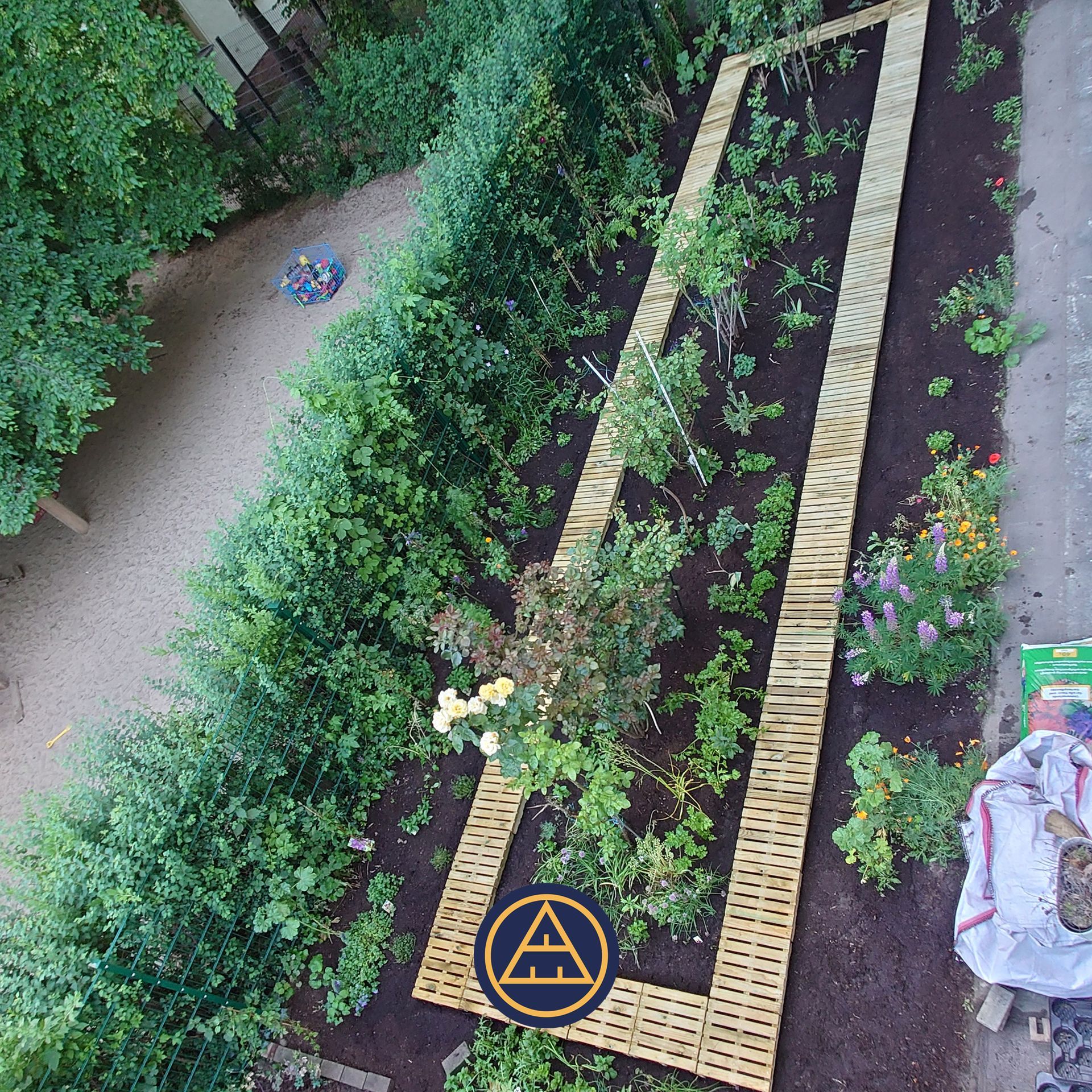 This mission was about the renovation and modernization of a private existing garden area. The original ground was revitalized my mixing it with approx. 1.2 tons of fresh soil. A new wooden walking path allows for a circulation, making the area more accessible, the maintenance more comfortable, and giving the place a new structure.