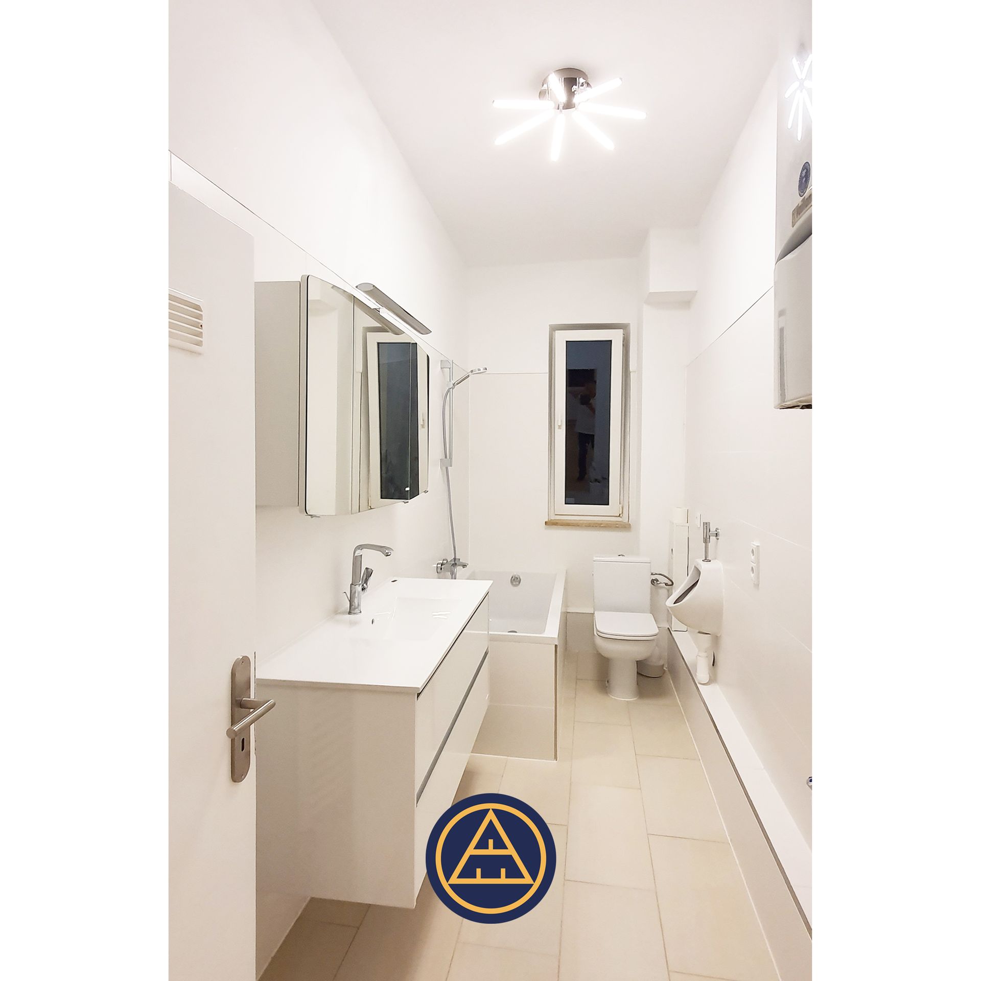 One of our first projects. This involves the renovation of an apartment within an old existing building, in Nuremberg. The former floorings have been completely replaced, and the bathroom and kitchen have been renewed. At the same time, new contemporary LED ceiling lights were installed and all radiators, connections and fittings were replaced with new ones. The color- and material concept is reduced to the essentials and limited to white, oak and stainless steel.